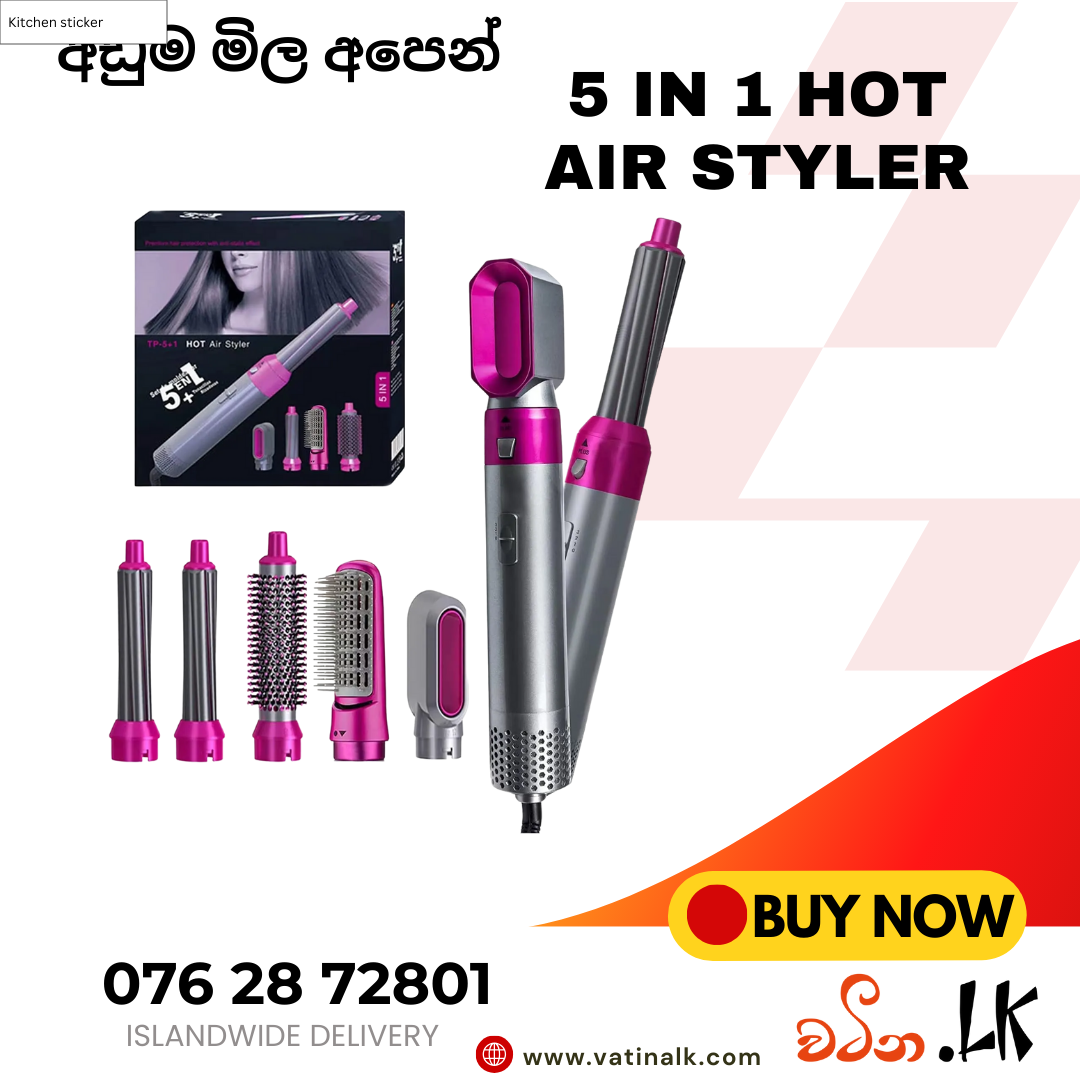 5-in-1 Multifunctional Curling Iron Set, Hot Air Styler Styling Tool, with 5 Interchangeable Barrels, Hair Dryer Straighteners Curling Irons Hot Wind Combs in Sri Lanka, buy now the best products at a very reasonable price in vatina.lk online shopping.